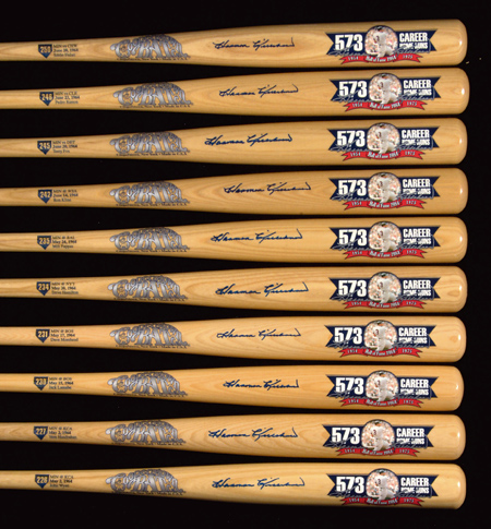 Description:Lot of (25) Harmon Killebrew autographed commemorative baseball bats. Full sized baseball bats by Cooperstown Bat Company with "573 Career Homeruns" graphic on barrel end. A total of (573) were produced, each representing a different homerun with the handle portion having laser engraved to correspond to an individual homerun number, date, opposing team, and opposing pitcher. Those included in this lot represent numbers between (226) and (250). All signed in marker "Harmon Killebrew" rating 8 to 9 out of 10. Includes auction LOA from JSA and letter of provenance from Nita Killebrew: NM-MT