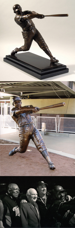 Description:Fine Harmon Killebrew bronze statue (Target Field miniature version). Substantive cast bronze Harmon Killebrew figure displayed atop two-tiered marble base, stands approximately 18" tall with 10.5"x18.5" footprint. One of the most realistic figures of its type which we have encountered and based on the original by Bill Mack which stands outside Target Field. Weighs nearly 70 pounds and is in like new condition. Includes letter of provenance from Nita Killebrew and pair of related images: NM