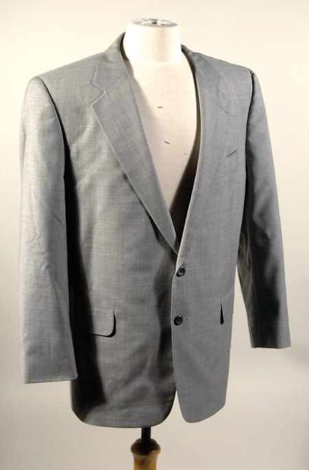 Description:Harry Kalas' sportcoat. Men's jacket by Harry Lebow displaying light to moderate evident wear has been laundered. Includes printed image of Kalas at his Hall of Fame Induction wearing this jacket (as confirmed by the family) and letter of provenance from the Kalas family: EX-EX/MT