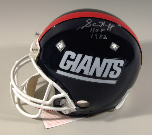Sam Huff autographed New York Giants helmet. Full size Riddell VSR-4 ProLine helmet signed in silver paint pen across the top. Includes COA from NFL with matching serial number sticker affixed: NM-MT