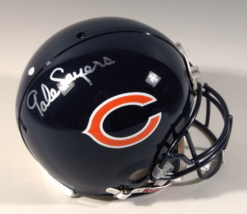 Gale Sayers autographed Chicago Bears helmet. Full size Riddell VSR-4 ProLine helmet signed in silver paint pen across the top. Includes COA from NFL with matching serial number sticker affixed: NM-MT