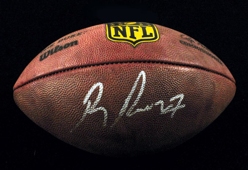 Ray Rice autographed football. Official Roger Goodell NFL model football by Wilson signed on side panel by Rice in silver paint pen. Includes COA from NFL with matching serial number sticker affixed: NM-MT