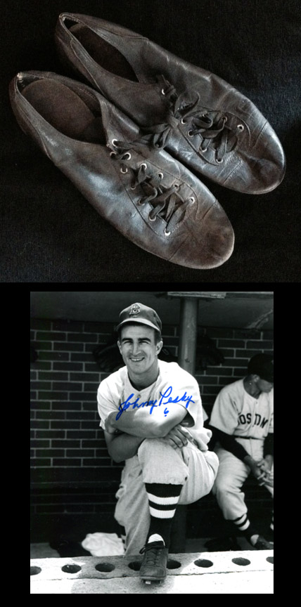 Johnny Pesky’s cleats c.1940s-50s. Wilson brand cleats as worn by Johnny Pesky with strong evident use throughout. Right shoe retains full manufacturer's tag on interior. Includes LOA from Hunt Auctions: EX