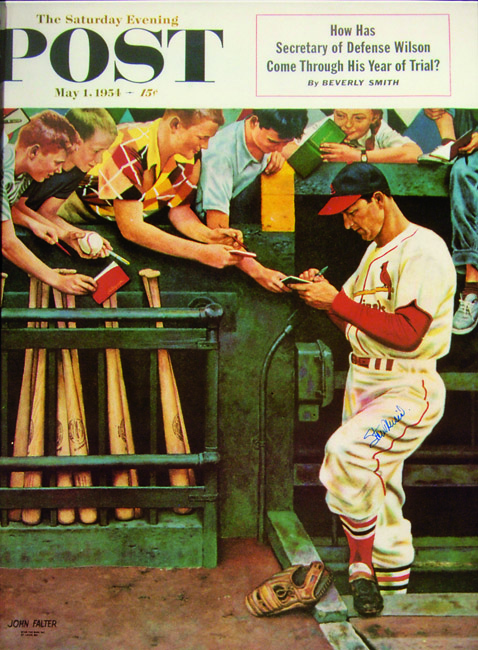 Description:Stan Musial autographed large format Saturday Evening Post print. Oversized reproduction of the icon publication cover on which he is pictured has been signed "Stan Musial" in blue marker rating 8/9 out of 10. Framed for display to 33"x43" overall. Includes auction LOA from JSA: NM