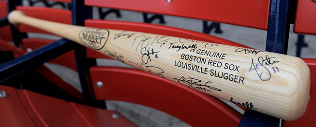 Description:2013 Boston Red Sox team signed baseball bat (World Series Champions). Full sized Louisville Slugger “Boston Red Sox” model baseball bat has been signed throughout by approx. (25) team members incl. Ortiz, Lester, and Pedroia. Black marker signatures rate 8/9-9/10 out of 10. Consigned by the Boston Red Sox to benefit the team’s charitable endeavors: NM-MT