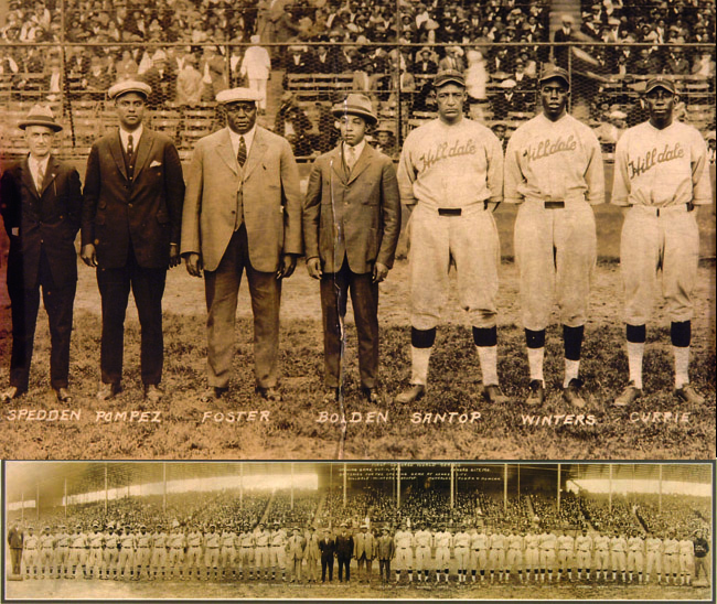 Description:Important 1924 Negro League World Series "Opening Game" panoramic photograph. Historic image as taken on October 11, 1924 in Kansas City showing the hometown Monarchs and rival Hilldale Daisies just prior to Game (5) of the Inaugural Negro League World Series. Captioning at top reads in part, "First Colored World Series Opening Game...at Kansas City" and players/personnel are identified below their respective likenesses. Amongst those shown are a host of notables including (8) future Hall of Fame Inductees: players Jose Mendez, Bullet Rogan, Judy Johnson, Biz Mackey, and Luis Santop and League/team Officials Rube Foster, J.L. Wilkenson, and Alex Pompez. The best of nine game Series was ultimately won by Kansas City having been played in (4) different venues across just as many states with Game (5) being the first (thus "Opening") in Kansas City. Photograph offers exceptional display qualities with crisp clarity to visible area which measures approx. 6.5"x35" and shows mild even toning and several light/moderate vertical creases (resulting from decades of rolled storage); the most severe of which appears near dead center. The photo has been professionally cleaned and mounted to backing (archival level of standards) with some additional wear/chipping below matting. Framed to 14.5"x42.5" overall. Of noteworthy historical import and one of a select few copies to have surfaced, originating from property of participating player Newt Joseph: Displays EX-EX/MT