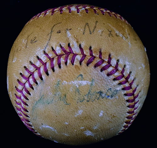 Description:Jackie Robinson single signed baseball. Huber brand “Energized League Ball” has been signed on the side panel, “Jackie Robinson” in ink rating 5/6-6 out of 10. Ball displays even toning with some light scattered surface wear and has “Vote for Nixon” written across the sweetspot in unknown hand. Robinson supported Nixon during his 1960 Campaign rather than siding with John F. Kennedy, a decision he later made known to have been regrettable. Includes full LOA from JSA: VG-EX
