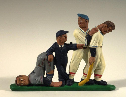 Description:Rare Rittgers baseball themed wall plaque c.1947. Chalk-ware display piece (approx. 12"x8.5") designed for wall mounting retains the original "Suttle and Rittgers" makers tag on back with "1947" year of production impressed at bottom. No visible wear worthy of mention however it appears that the paint may have been touched up in a few very unobtrusive areas. Double sided tape applied at three areas from prior display: Displays EX/MT-NM with note to description