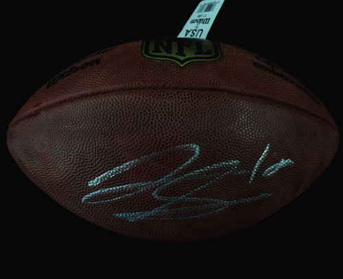 Josh Gordon autographed football. Wilson NFL R.Goodell official football signed by Gordon in silver marker. Includes NFL Auction COA from PSA/DNA with matching serial number sticker affixed: NM