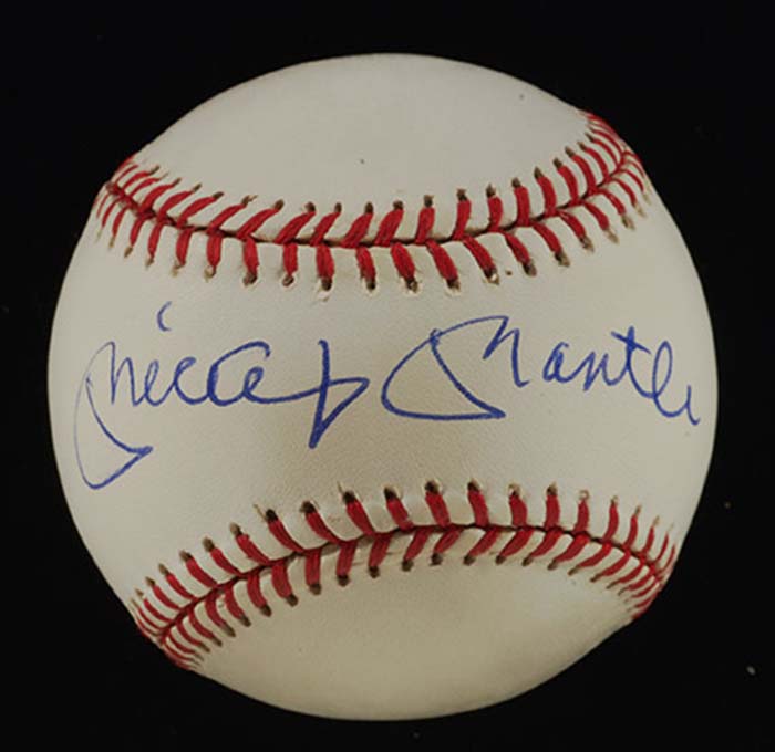 Mickey Mantle single signed baseball. Outstanding high grade condition example signed in bold blue ink across the sweet spot of B.Brown AL baseball. Signature rates 9/10 out of 10. Includes auction LOA from JSA: NM