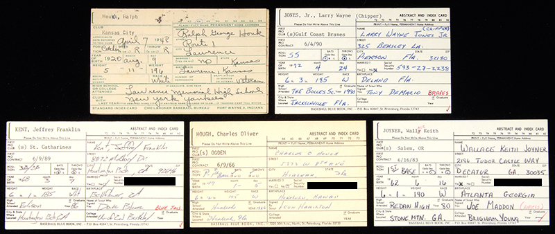 Description:Large lot of approx. (1,000+) signed & printed informational cards from the Ray Nemec Collection c.1940-90s (mostly 1970s-80s last names beginning with letters from He to Ki). Varied selection to include both fully handwritten and signed examples, hand printed examples, and typewritten examples from a myriad of players including some notables and obscurities. Better names documented within group include Ralph Houk, Chipper Jones, Jeff Kent, Charlie Hough, Wally Joyner, and many others with a nice selection of rarities likely included. Due to the huge volume and mixture of both autographed and printed examples we are not able to include any specific letters of authenticity with the lot. The grouping is fully guaranteed to have originated from the Nemec Collection: Range VG-NM