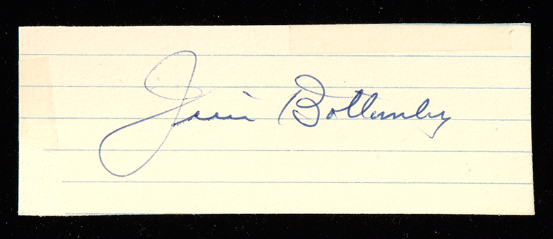 Jim Bottomley autograph (Sig. EX/MT-NM) Vintage ink siganture rating 7/8 out of 10 appears on 1.5"x4" section of index card. Small pieces of tape on (2) edges do not effect signature. Includes auction LOA from JSA: Sig. EX/MT-NM