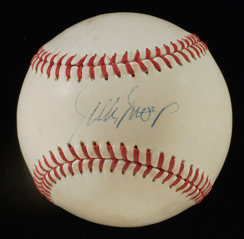 Vintage Willie Mays single signed baseball c.1970s. Off white Feeney NL baseball signed across the sweet spot by Mays in blue ink rating 8 out of 10. Includes COA from SGC Authentic and auction LOA from JSA: Ball: EX-MT, Signature: NM