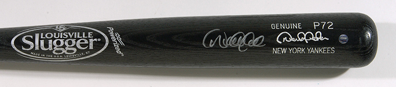 Description:Derek Jeter autographed baseball bat. Louisville Slugger baseball bat done in similar style to which he would have used has been signed "Derek Jeter." Silver marker signature rates 8 out of 10. Includes COA from Steiner Sports and both their hologram and an MLB Authentication hologram are affixed: NM