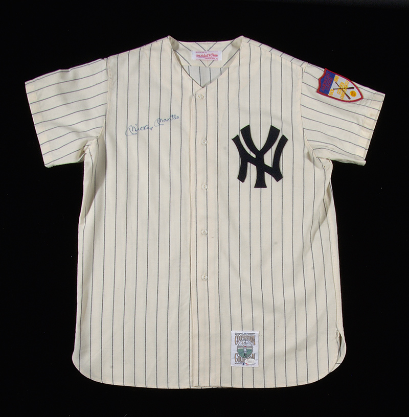 Mickey Mantle autographed New York Yankees jersey. Top of the line 1951 style throwback jersey by Mitchell & Ness has been signed "Mickey Mantle" on the upper left chest. Marker signature rates 8 out of 10. Includes full LOA from JSA: NM