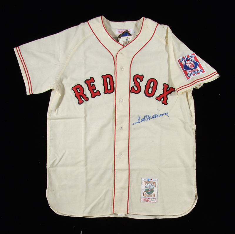 Ted Williams autographed Boston Red Sox jersey. Top of the line 1939 style throwback jersey by Mitchell & Ness has been signed in marker rating 8/9 out of 10. Includes full LOA from JSA: NM