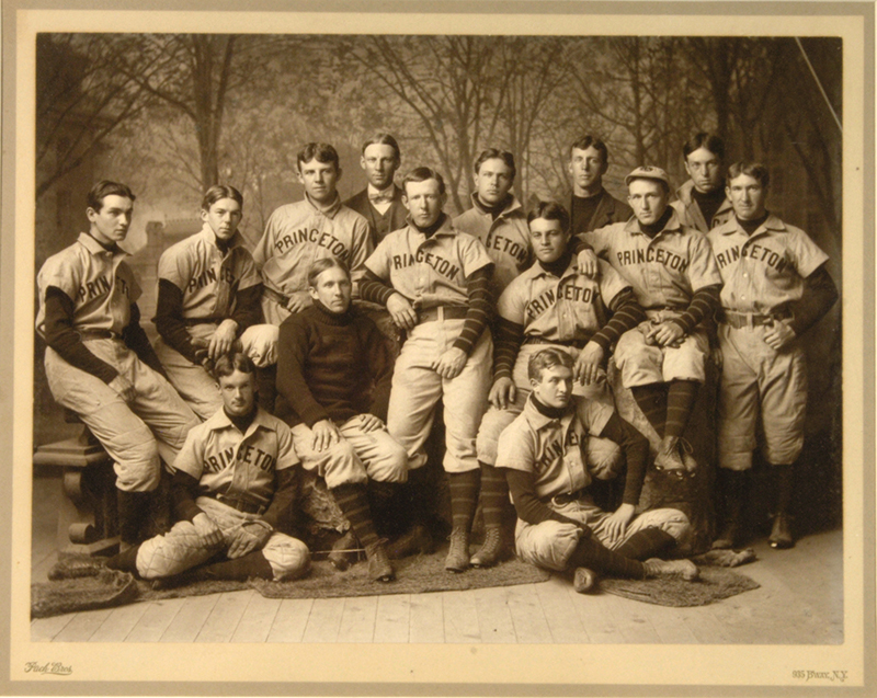 Description:Princeton baseball team large format photograph c.1898-99. Oversized sepia toned photo on "Pach Bros" marked mount displaying crisp clarity and registration. Housed in 16"x19" frame with visible area of 11"x14". No visible wear: Displays NM