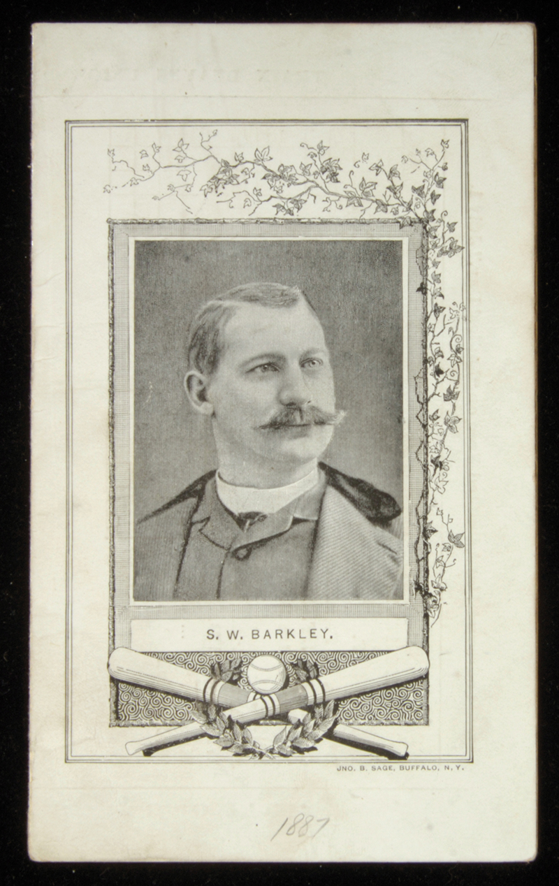Description:June 30, 1887 Pittsburgh Alleghenys vs. Boston Beaneaters scorecard. Original scorecard issued for the game played at Recreation Park in Pittsburgh pictures player Sam Barkley on the front. Scored neatly in pencil reflecting a win by the Alleghenys who faced Hall of Famers Old Hoss Radbourne and Mike Kelly. Light to mild general handling wear with small pencil year notation on front: EX