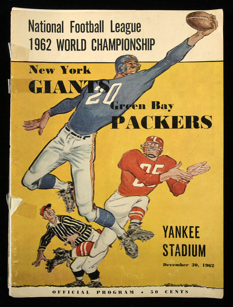 Description:December 30, 1962 NFL World Championship game program. Original program as issued for game played between New York Giants and Green Bay Packers at Yankee Stadium in New York. Several pieces of vintage tape are reinforcing the spine area: VG
