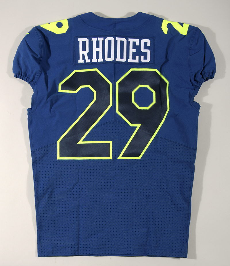 Description:Xavier Rhodes 2017 game issued Pro Bowl jersey. Nike size 44 NFC #29 Xavier Rhodes jersey with proper On Field tagging inside the collar. Includes NFL Auctions COA from PSA/DNA, with matching serial #ed sticker affixed to the jersey. Shows no signs of use/wash wear: NM