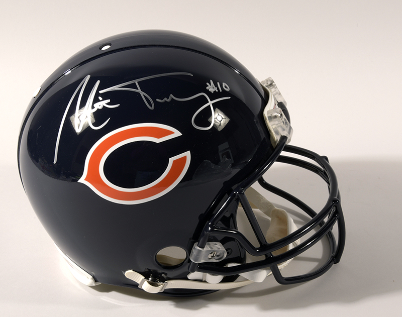 Description:Mitchell Trubisky autographed Chicago Bears full size helmet. Riddell VSR4 ProLine helmet signed by Trubisky in silver marker. Signature rates 9 out of 10. Includes NFL Auction COA from PSA/DNA (matching serial #ed sticker is affixed to the helmet): NM/MT
