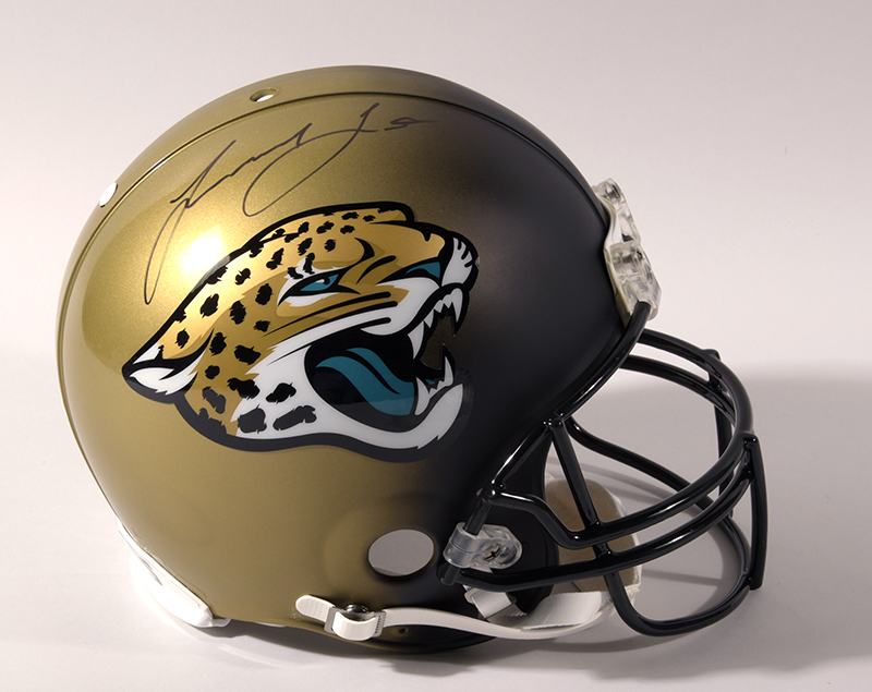 Description:Leonard Fournette autographed Jacksonville Jaguars full size helmet. Riddell VSR4 ProLine helmet signed by Fournette in black marker. Signature rates 8/9 out of 10. Includes NFL Auction COA from PSA/DNA (matching serial #ed sticker is affixed to the helmet): NM/MT