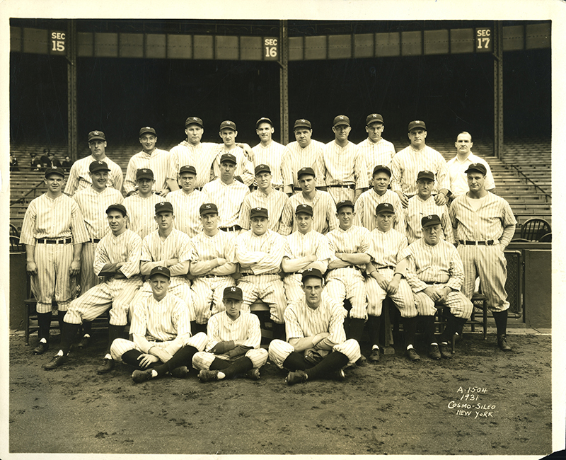 Description:1931 New York Yankees team photograph by Cosmo-Sileo (PSA/DNA Type I). Crisp sepia toned 8"x10" photo has a touch of light wear with small chip to lower right corner and some very small edge tears. Studio mark appears within the image and the back is blank. Includes LOA from PSA/DNA graded "Type I" and certificate of provenance from Photo File: VG-VG/EX