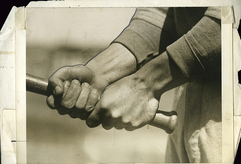 Description:George L. Kelly "Powerful Grip" photograph c.1921 (PSA/DNA Type I). Sepia toned 5.25"x7" image displays some mild scattered wear and has been prepared for use in publication with some resulting marks on front. In addition, there are tape remnants on upper front corners. "Underwood & Underwood" stamp appears on the back along with the original paper caption. Includes LOA from PSA/DNA graded "Type I" and certificate of provenance from Photo File: GD/VG