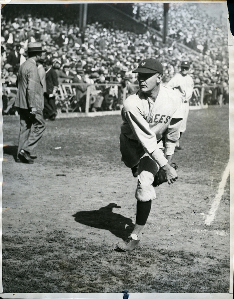 Description:George Pipgras at the World Series photograph c.1927 (PSA/DNA Type I). Sepia toned 8"x10" photo with general wear including some corner/edge chips and pinholes. "Wide World Photos" stamp appears on back along with paper caption and some additional markings. Includes LOA from PSA/DNA graded "Type I" and certificate of provenance from Photo File: GD/VG