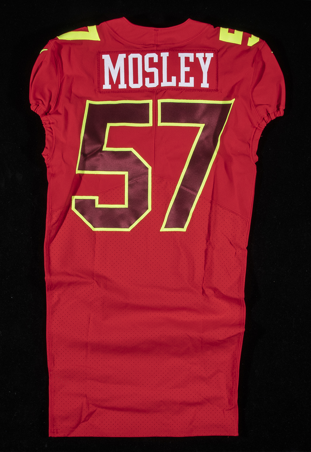 Description:C.J. Mosley 2017 game issued Pro Bowl jersey. Nike size 40 #57 C.J. Mosley jersey with proper On Field tagging inside the collar. Includes NFL Auction COA from PSA/DNA, with matching serial #ed sticker on the jersey. Shows no signs of use/wash wear: NM
