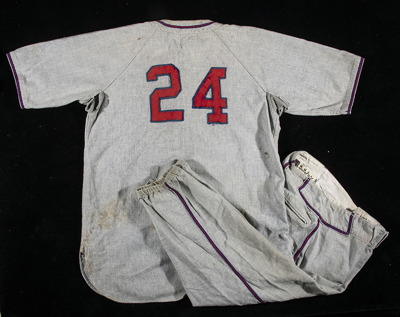 Description:1942 Ken Jungels Pittsburgh Pirates professional model road jersey with period pants. Road gray jersey has player number "24" on the back and a "Jungels" embroidered strip tag in the collar. "Spalding" and size "44" tags appear just above. Both the "Pittsburgh" team name across the front and a "Health" sleeve patch have been removed. As these jerseys were reused throughout the Pirates Minor League system, it is likely that other names (and possibly patches) were also sewn on and removed in the in the mid-late 1940s. Pants date to a similar period and are by Wilson with "Butcher" embroidered and size "44" tags in the waist (Max Butcher played with Pitt from 1939-45). Use and some general age related wear throughout which is more pronounced on the jersey. Includes LOA from Hunt Auctions: EX