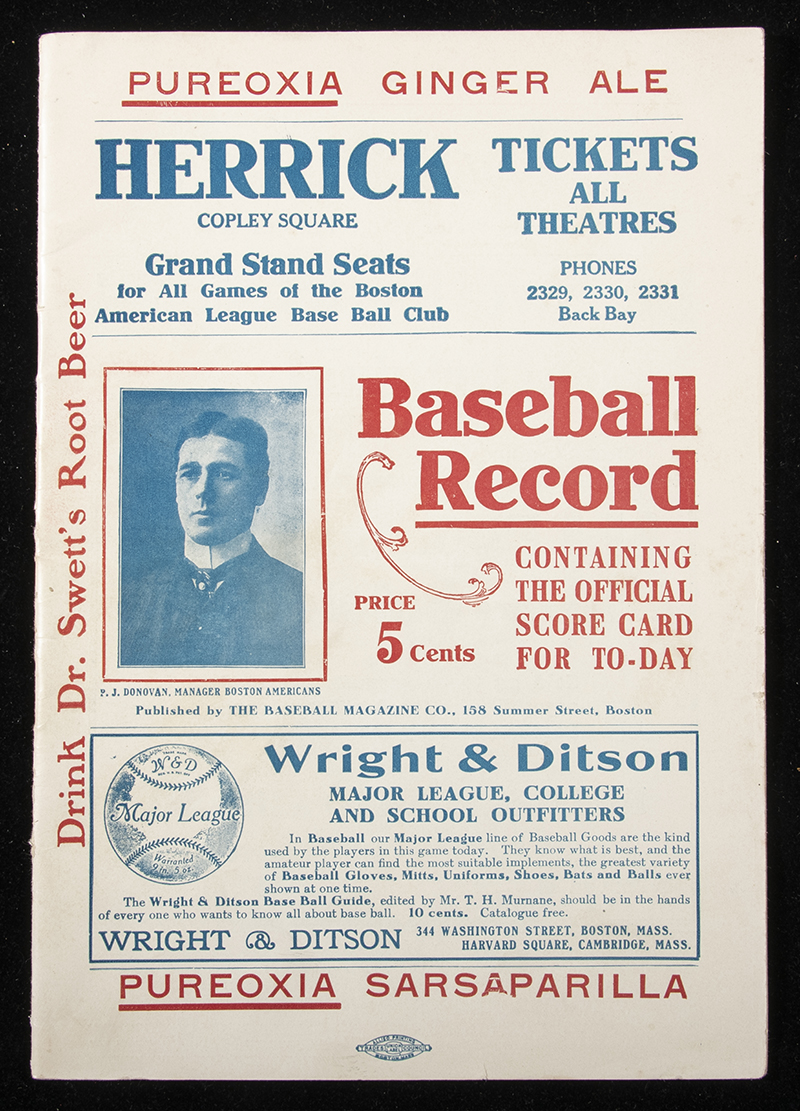 Description:July 23, 1910 Boston Red Sox vs. St. Louis Browns scorecard. Original scorecard issued for the game played at the Huntington Avenue Baseball Grounds has been scored neatly in pencil to reflect the Browns win. Pre-printed lineups include Hall of Famers Tris Speaker, Harry Hooper, and Bobby Wallace. Light handling wear with a few scattered wrinkles/creases: VG/EX