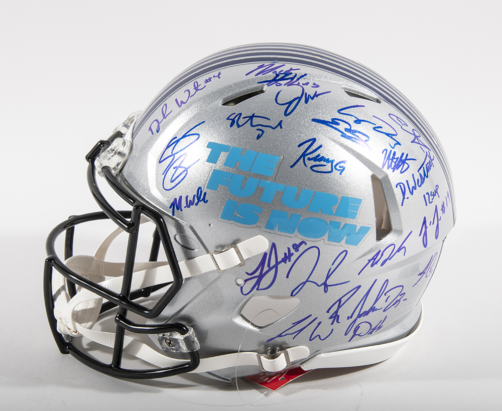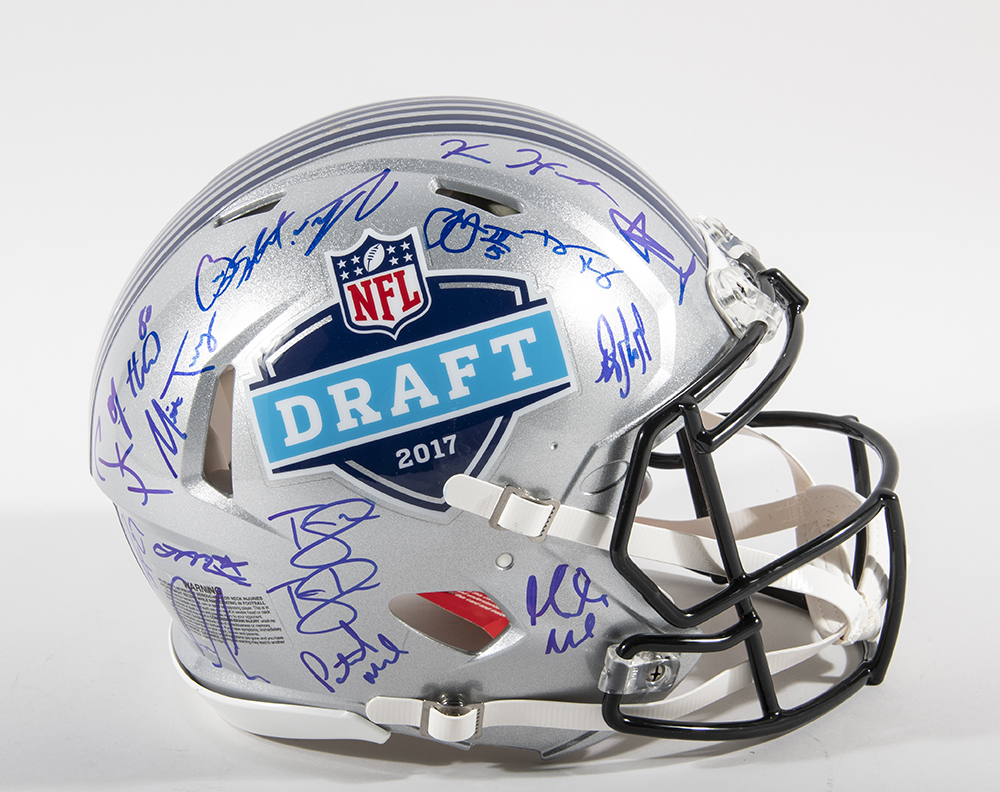 Description:2017 NFL Draft autographed Pro Line helmet. Riddell R41167 Speed Classic helmet signed by (37) including Patrick Mahomes, Deshaun Watson, James Conner, Alvin Kamara, JuJu Smith-Schuster, Kenny Golladay, Mitchell Trubisky, Dalvin Cook, Leonard Fournette, Kareem Hunt, and many others. Signatures rate 6/7 to 10 (avg 8/9) out of 10. Includes NFL Auction COA from PSA/DNA, with matching serial #ed sticker on the helmet: NM