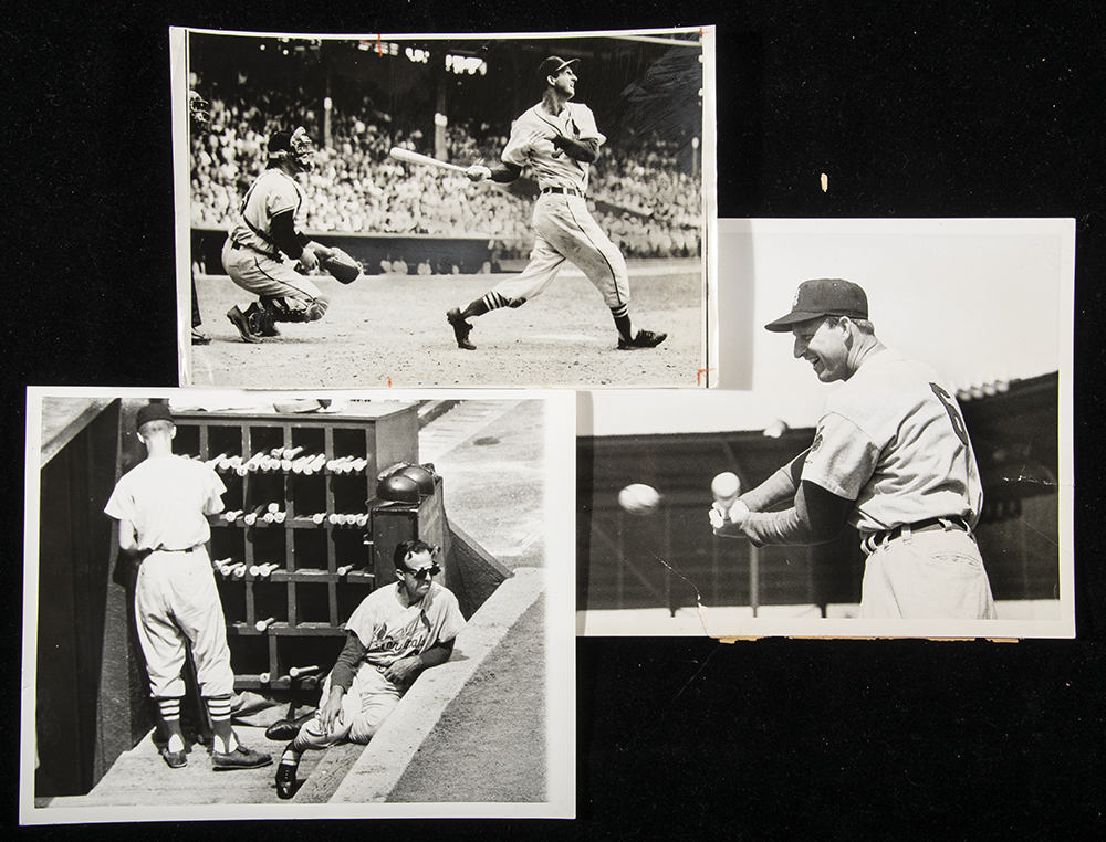 Lot of (3) Stan Musial photographs c.1950-60s. Includes two batting pose and one dugout view each stamped and dated by various news services on the back: Range VG-EX