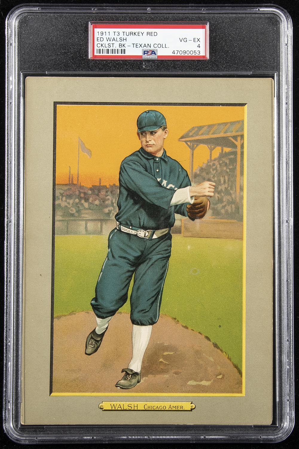 1911 T3 Turkey Red Ed Walsh (Checklist back). Very strong card for the grade which has light/mild corner wear: PSA VG-EX 4