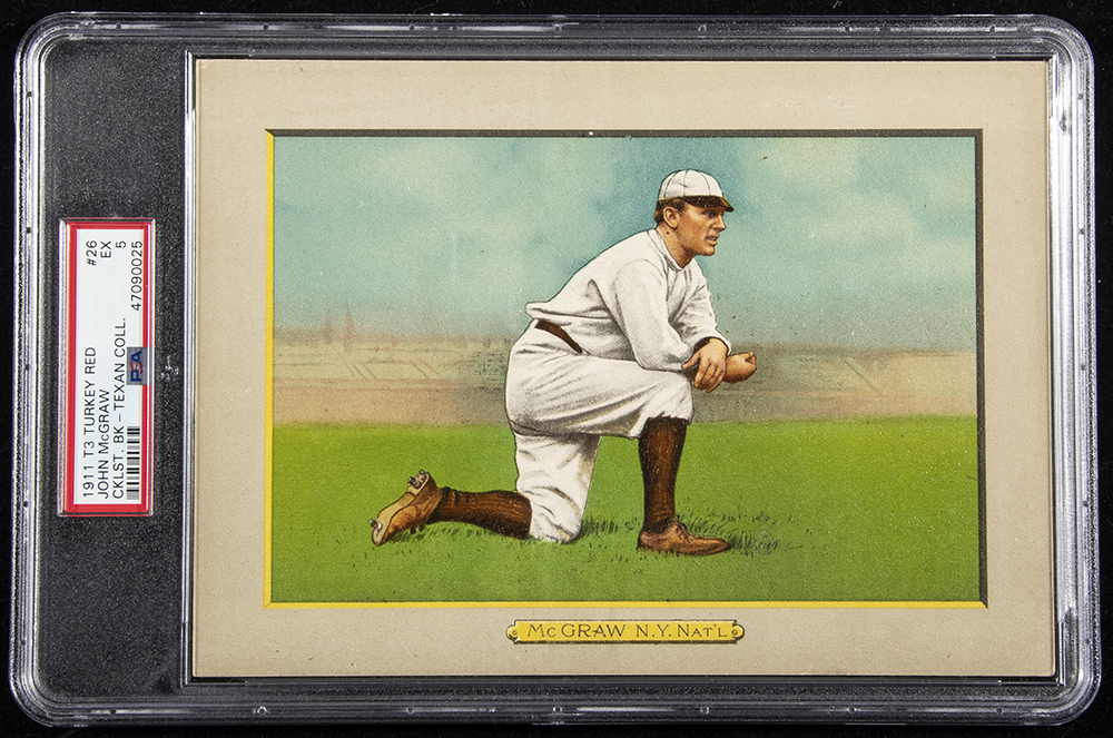 1911 T3 Turkey Red John McGraw (Checklist back). A hint of light wear is confined to the corners and only a handful have been graded higher: PSA EX 5