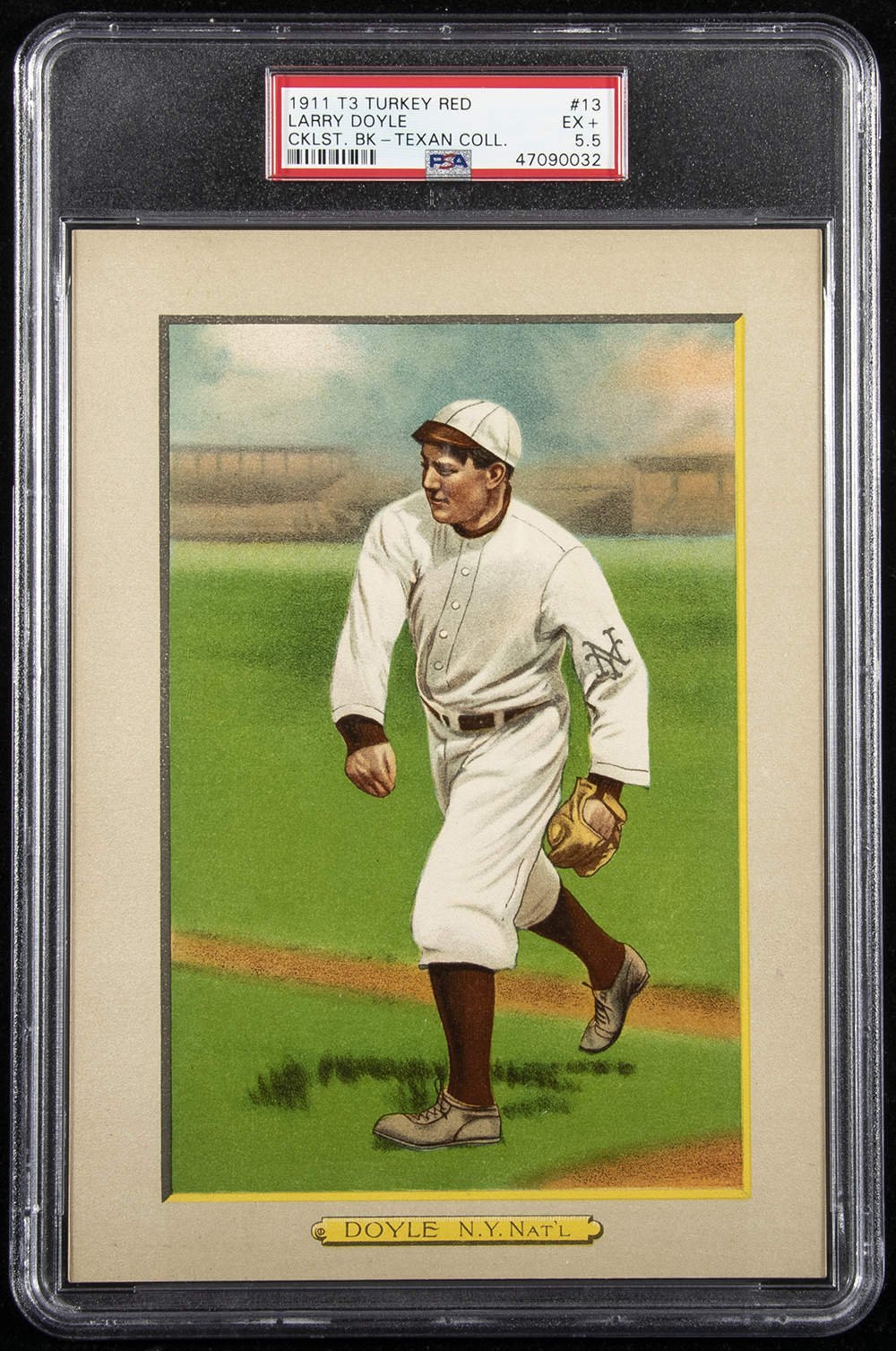 1911 T3 Turkey Red Larry Doyle (Checklist back). Crisp corners and edges with just the slightest hint of light wear: PSA EX+ 5.5