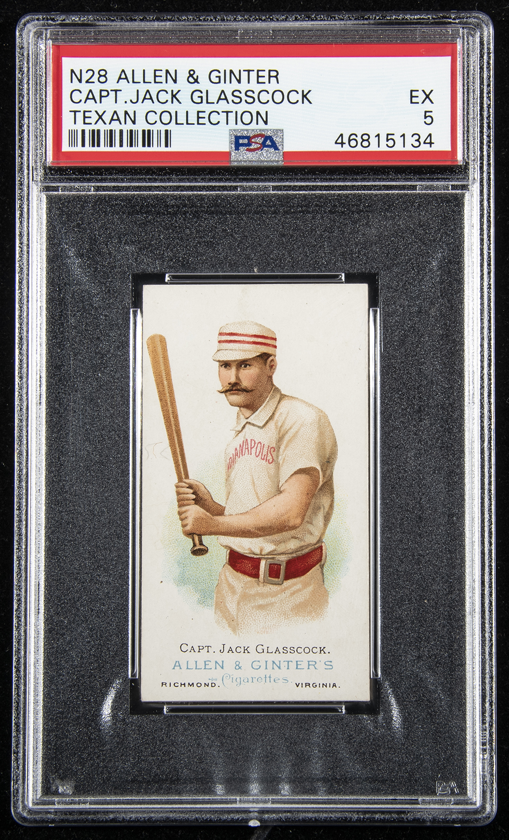 1888 N28 Allen & Ginter Jack Glasscock. Crisp image is slightly off center with the card showing perhaps a hint of light wear: PSA EX 5