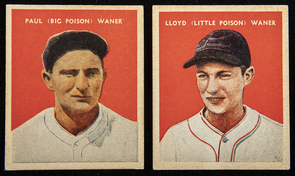 1932 U.S. Caramel #2 Paul Waner and 13 Lloyd Waner. Includes #2 Waner (GD-GD/VG, wrinkles on lower left front corner) and 13 Waner (VG): GD-GD/VG and VG