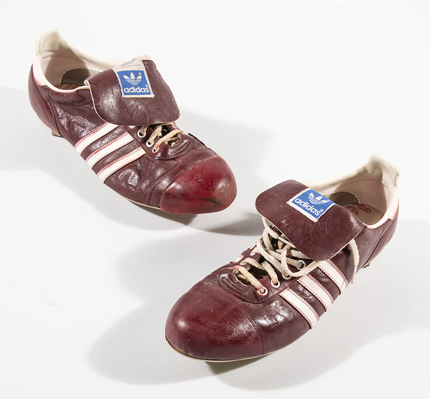 Description:Larry Christenson autographed 1980 World Series game worn cleats. Adidas size 12.5 spikes with his faded #38 still slightly visible on both heels, and pitching toe on the right shoe. Christenson signed both in blue marker and added "1980 WS" inscription to each. Signatures rate 8 to 8/9 out of 10. Outstanding use with some minor rusting to the metal spikes. Includes certificate of provenance from Larry Christenson: EX