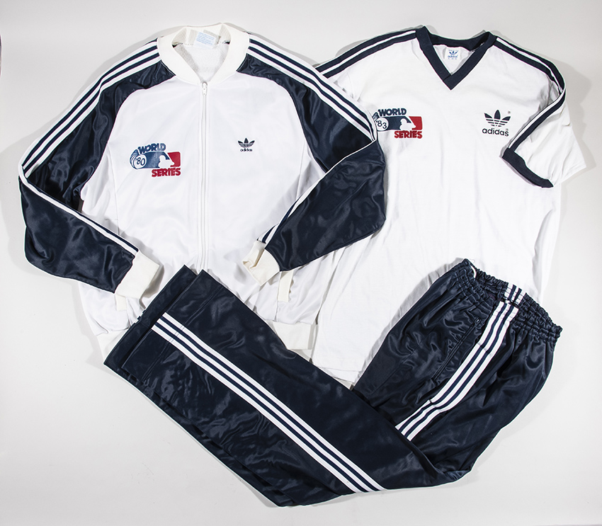 Description:Larry Christenson's 1980 World Series sweatsuit and 1983 World Series t-shirt. Includes Adidas jacket with 1980 World Series logo on the front along with Adidas size XL pants, and Adidas size XL t-shirt with 1983 World Series logo (light staining). Includes certificate of provenance from Larry Christenson: EX-EX/MT