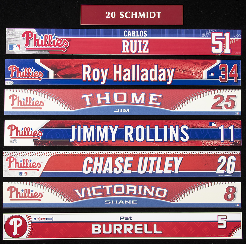 Mike Schmidt locker nameplate from Veterans Stadium, c.1980s. Plastic "20 SCHMIDT" nameplate measuring approx. 2"x10": EX/MT