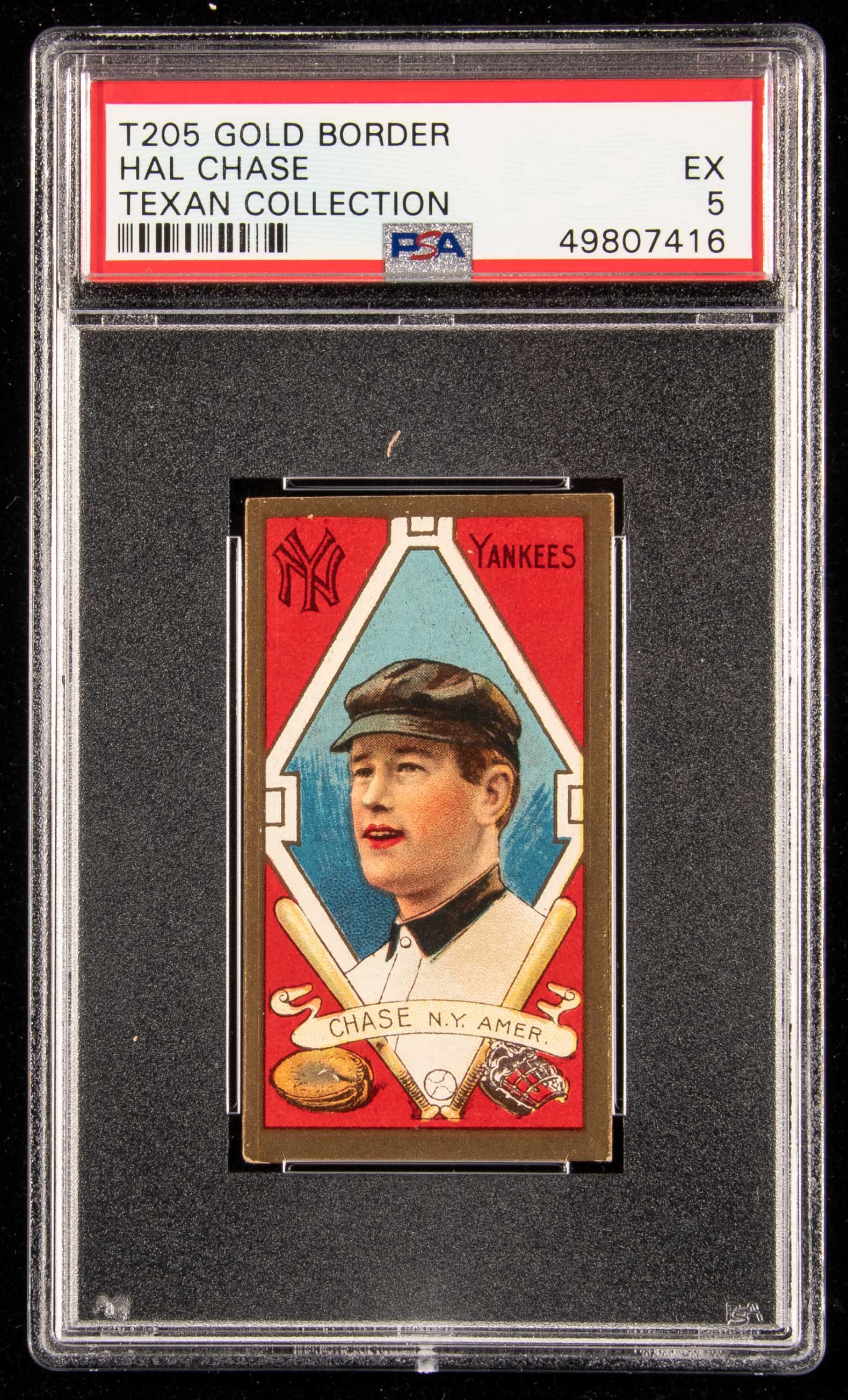 1911 T205 Gold Border Hal Chase (Only left ear shows). Outstanding card has only a faint touch of wear which is slightly more pronounced on lower left: PSA EX 5