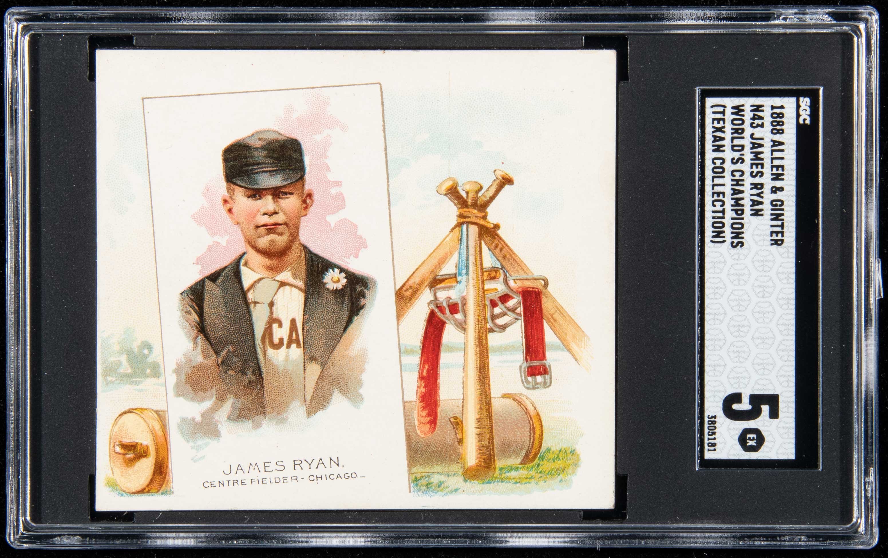 Description:1888 N43 Allen & Ginter World's Champions James Ryan. Attractive large format tobacco card featuring Ryan of the Chicago White Stockings. In very fine overall condition with no mentionable wear aside from the slightest touch to corners: SGC 5 EX