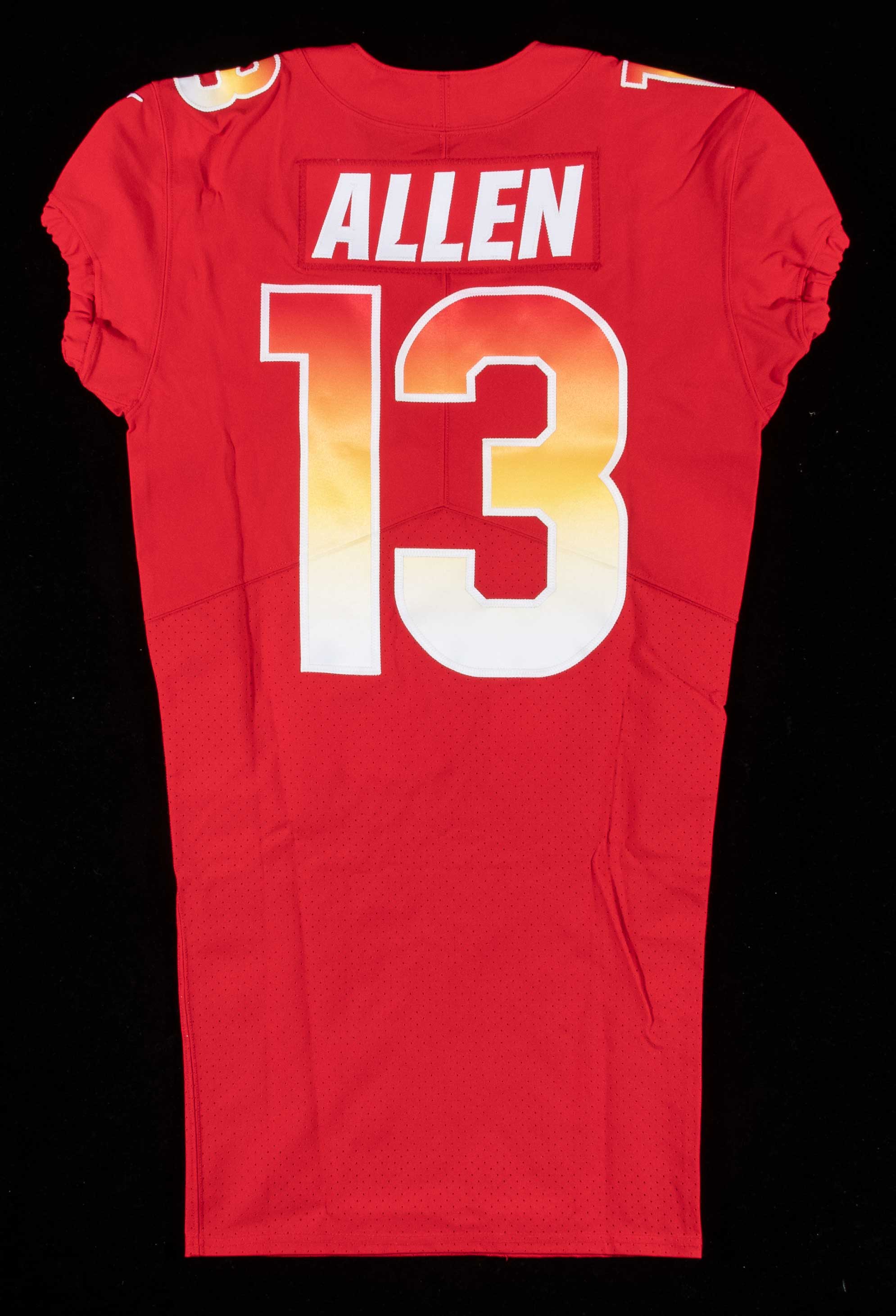 Description:Keenan Allen game issued 2019 Pro Bowl jersey. Nike size 38 AFC #13 Keenan Allen jersey with appropriate "On Field" tagging inside the collar. Includes NFL Auction COA from PSA/DNA with matching serial #ed sticker on the jersey. Shows no signs of use/wash wear: NM