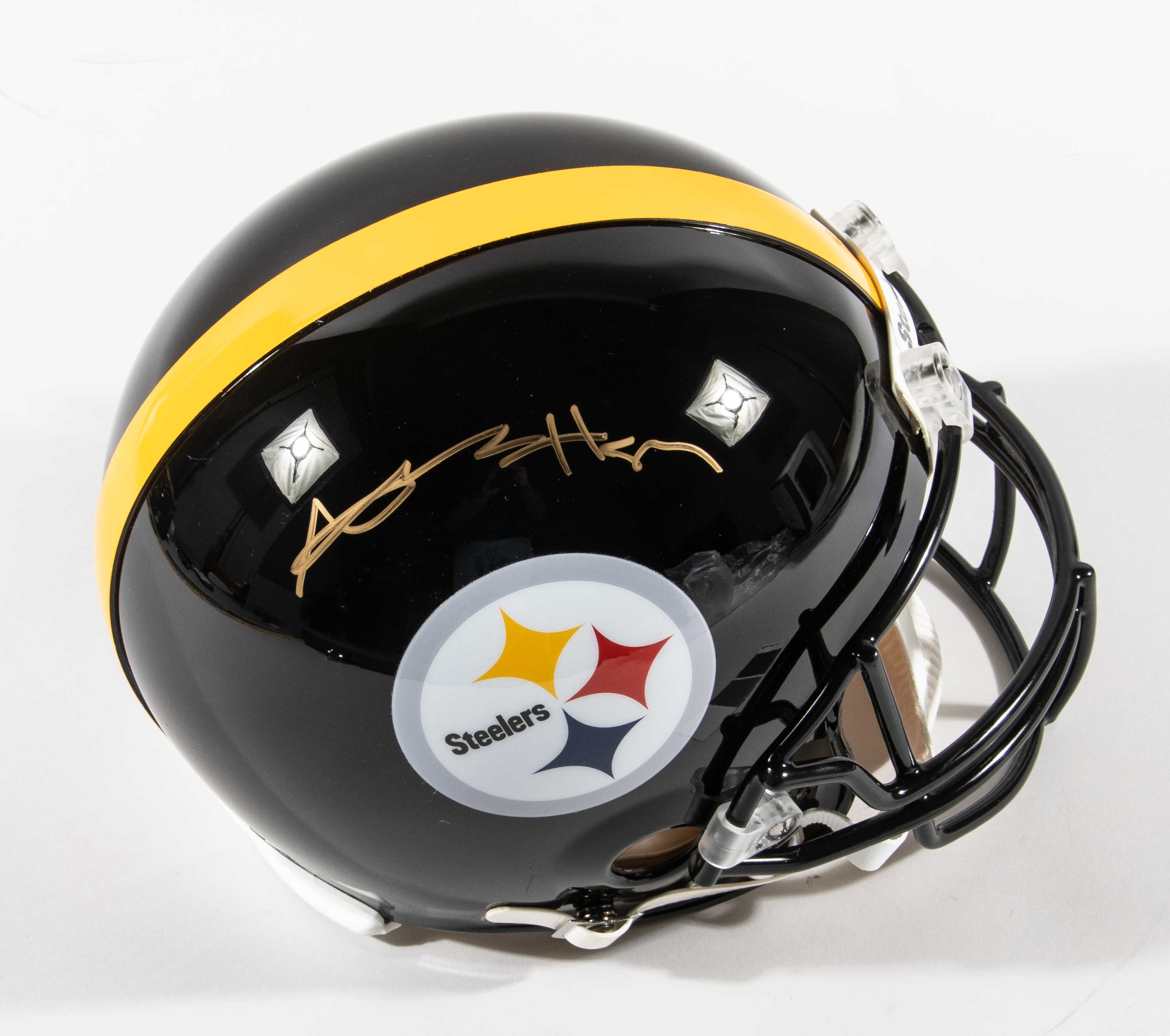 Description:Antonio Brown autographed Pittsburgh Steelers full size Pro Line helmet. Riddell VSR4 helmet signed by Brown in gold marker. Signature rates 8 out of 10. Includes NFL Auction COA from PSA/DNA, with matching serial #ed sticker on the helmet: NM