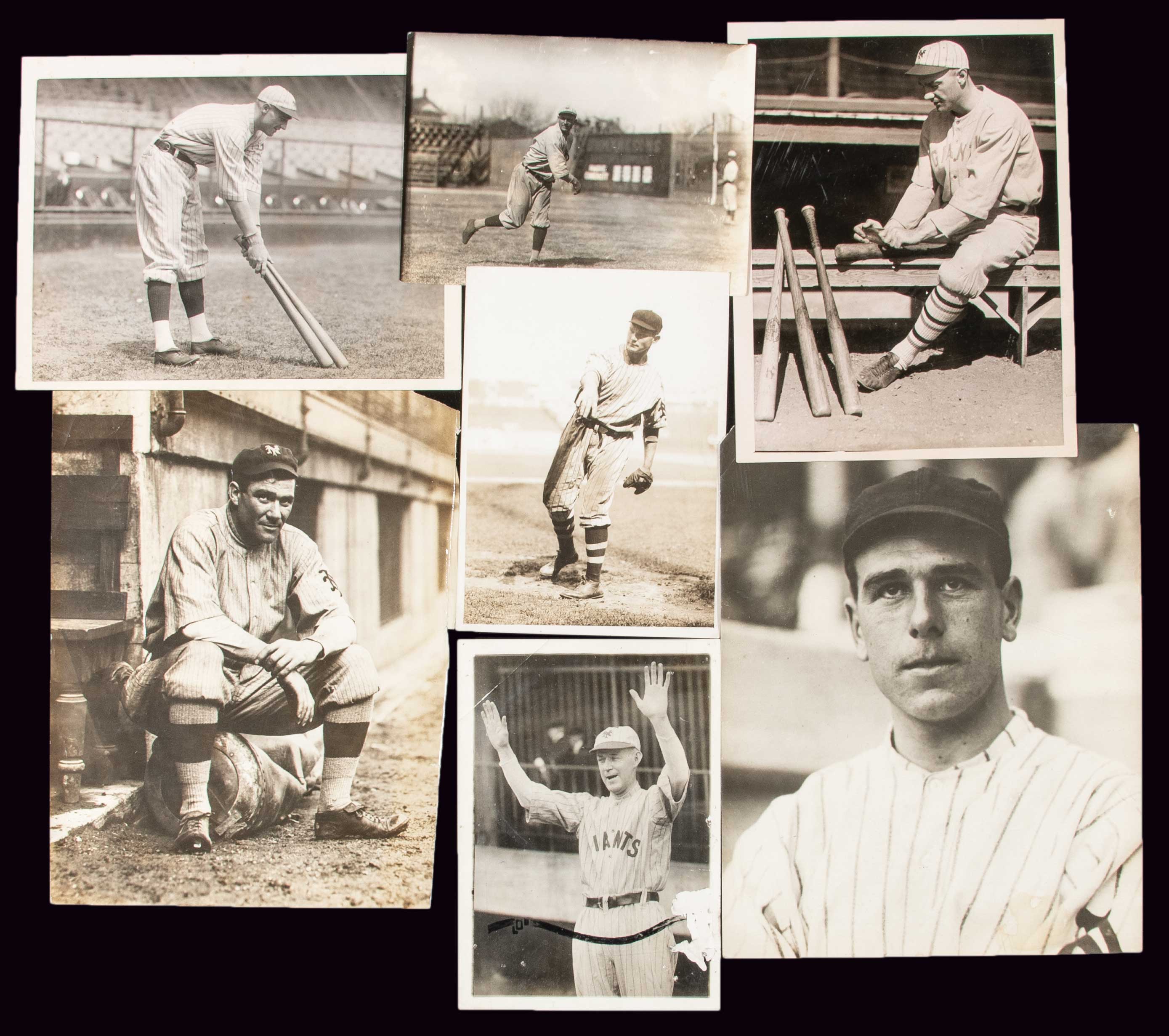 Description:Lot of (31) New York Giants related photographs c.1910-20s. Includes L.Doyle (Van Oeyen image), G.Kelly, J.Tesreau (P.Thompson image), F.Snodgrass (C.Conlon image), T.Jackson, R.Youngs, J.McGraw, and H.Gowdy. Various news service/photographer stampings on back with sizes ranging from 4"x5" to 8"x10". Very fine collection with excellent breakdown value: Range GD/VG-EX/MT