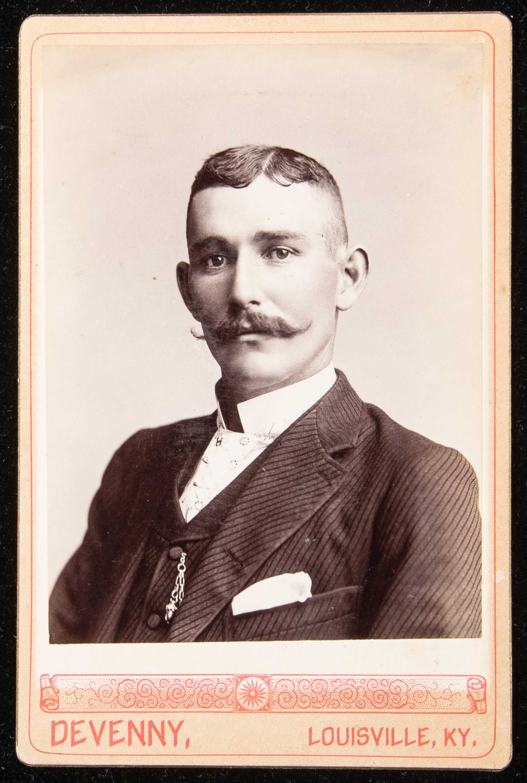 Description:Devenny Studio Harry "Farmer" Vaughn" cabinet photograph c.1888. Studio portrait showing Vaughn in his Sunday best remains in fine overall condition with little mentionable wear and a touch of light toning. Offered for the first time having been in the Vaughn Family since the time of issue: VG