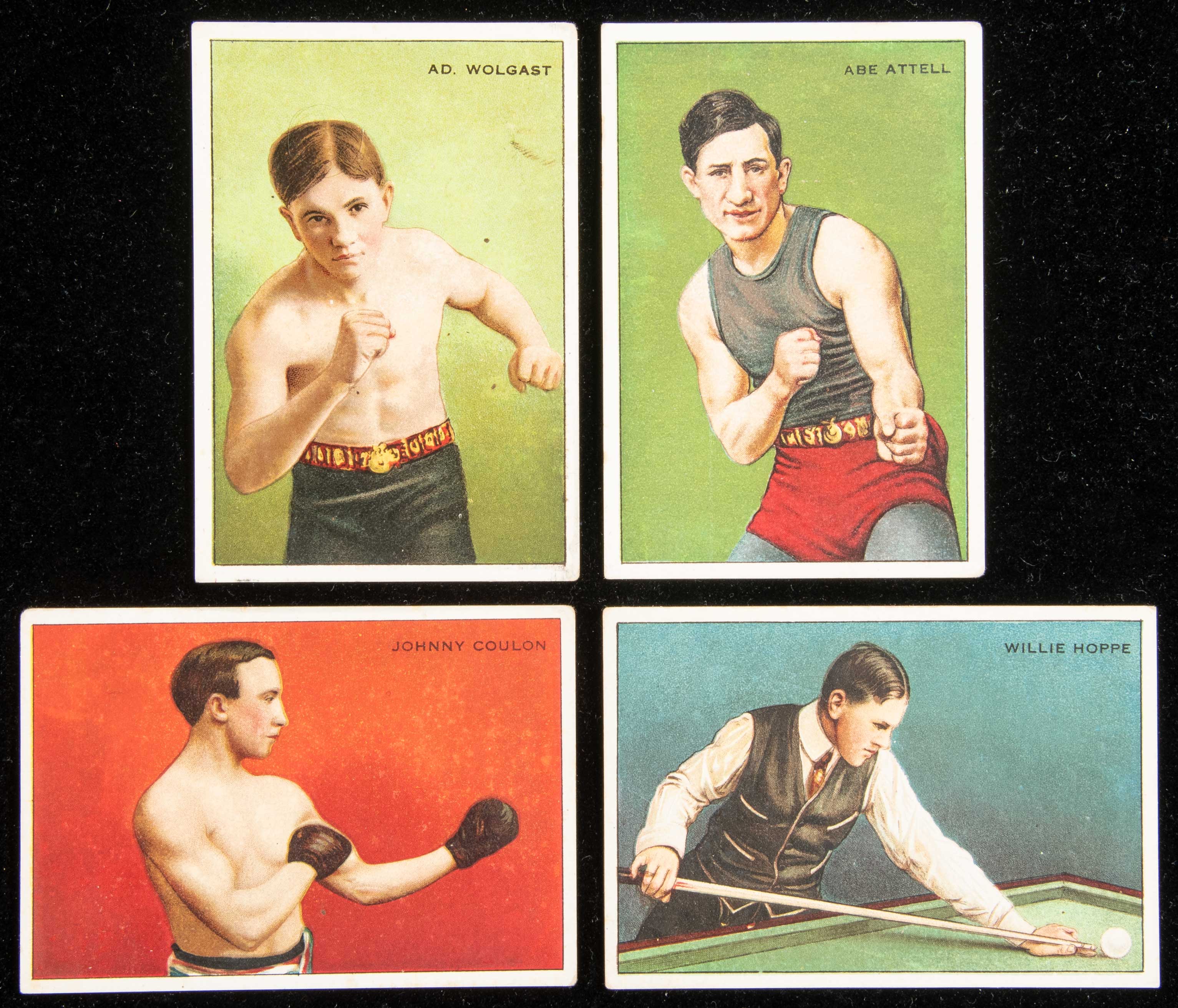 Description:1912 T227 Series of Champions partial set (17 of 24 cards). Includes Attell, Coulon, de Oro, Dixie IV, Ess H.K., Goodwin, Hilton, Hoppe, Klaus, Kramer, McDermott, McGrath, Mulford, Sheppard, Uhlan, Wolgast, and Zbyszko. Consistent average VG-VG/EX condition throughout with most cards having just a touch of light corner and/or edge wear: Avg. VG-VG/EX
