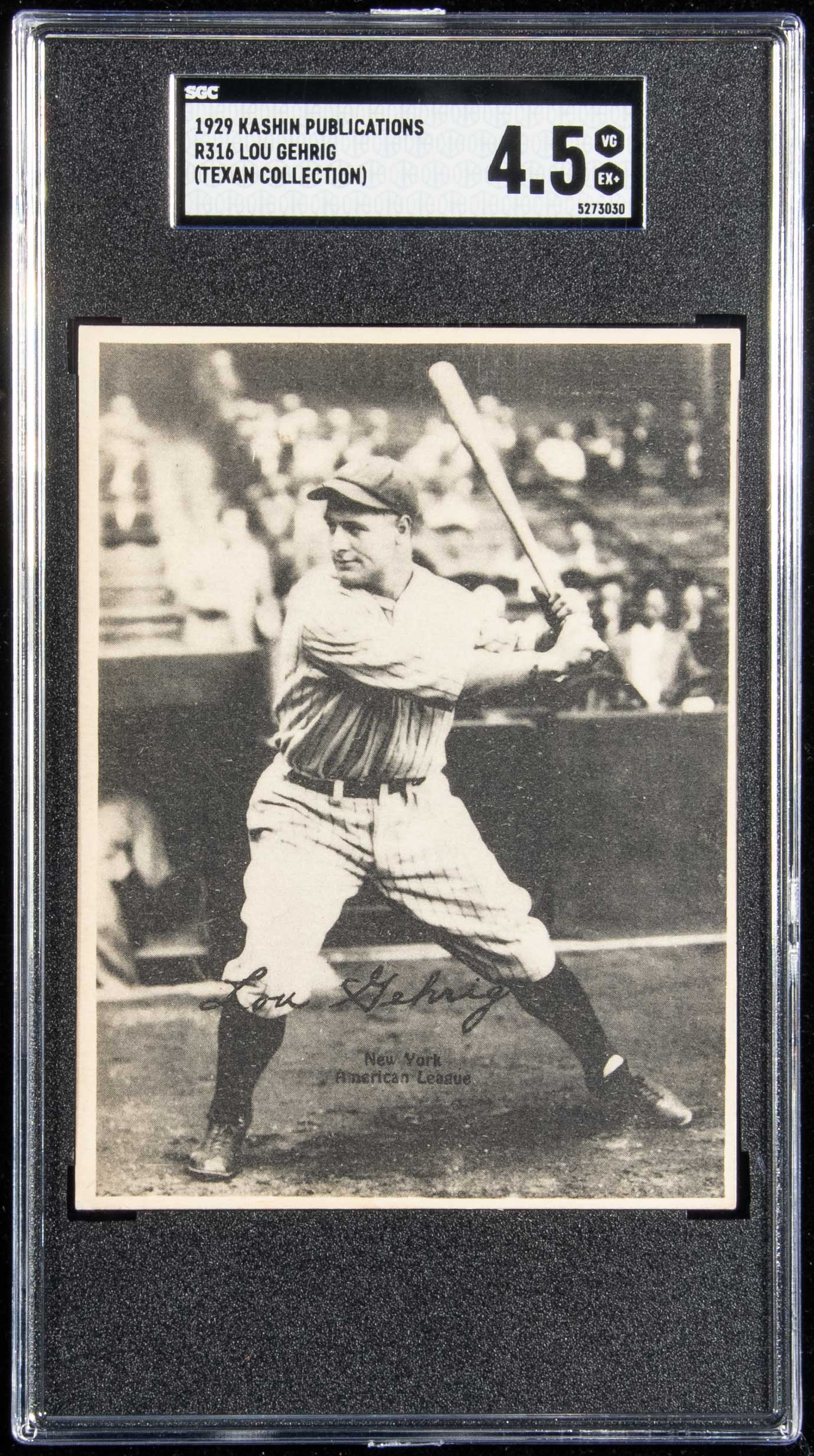 1929 R316 Kashin Publications Lou Gehrig. Very strong condition with wear limited to a touch to corners: SGC 4.5 VG EX+